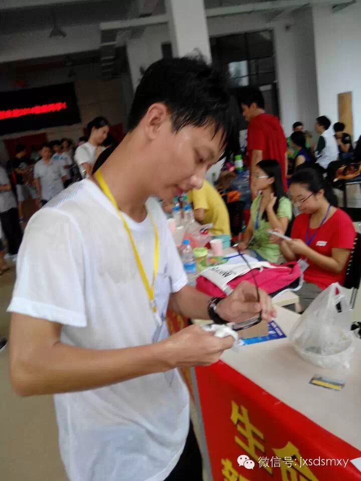 暴雨刚过,又迎来了明媚的太阳。9月12日是正式报道的时间,早上六点,志愿者们就全部到齐,不厌其烦的调试电脑,确认档案袋和校园卡数量,准备了一次性水杯,给报到的家长免费提供水,只想能在炎热的夏天给他们带来一丝凉爽。还没准备好,就有新生来排队报到了,志愿者们立即投入紧张的工作中。九月的南昌依然是三十多度的高温,志愿者们在火辣辣的太阳下穿梭在报到点和缴费点之间,挥汗如雨,连学姐们都不惧太阳的威力,热情为学弟学妹们服务,全心投入,用心服务。晚上七点,志愿者们还在坚守岗位,只因两个学妹还未到,即使只有一个人,我们也会等到最后。他们不求回报,甚至不求感谢,只要一个微笑,一份理解,他们就很知足。